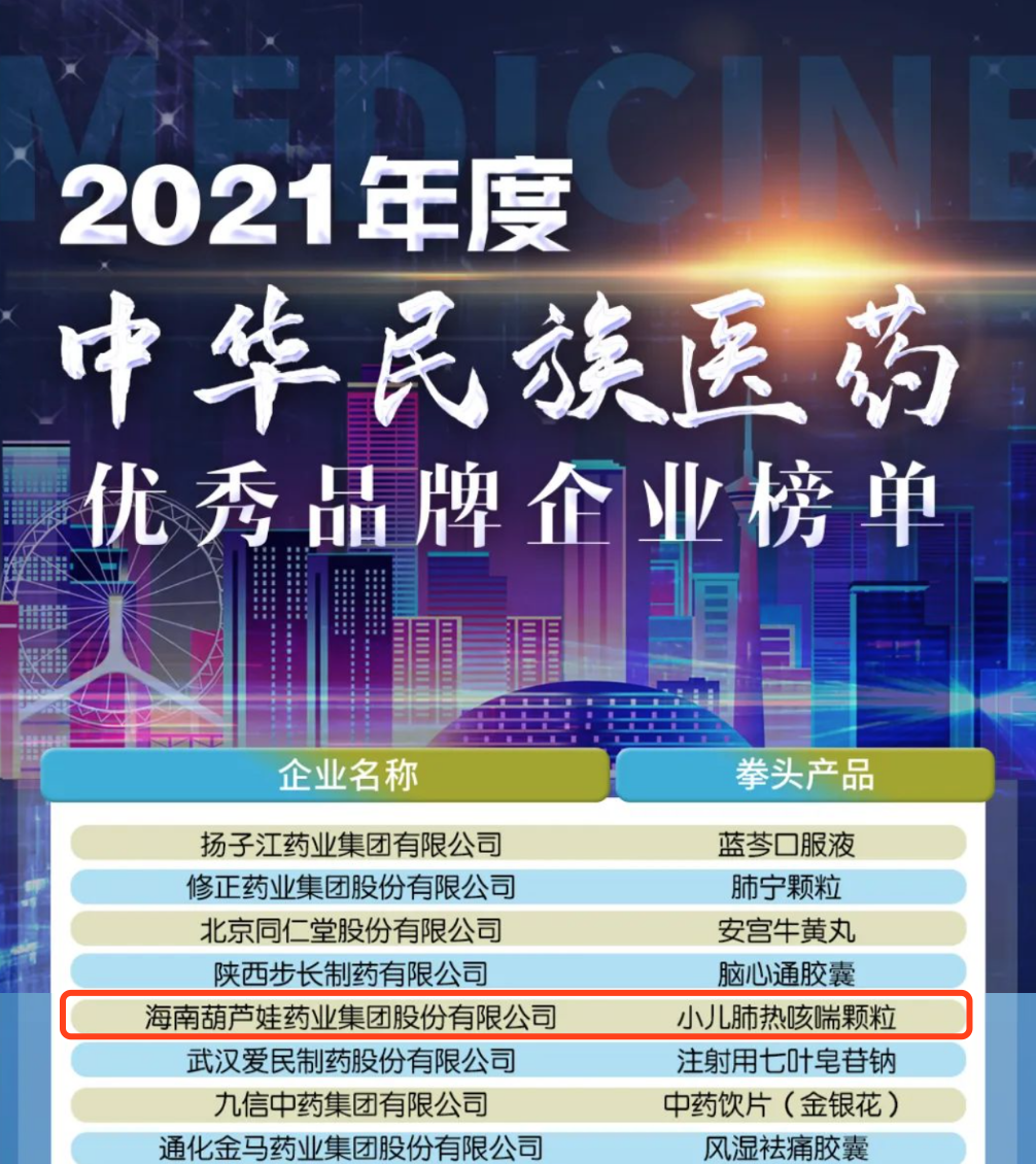12月29日,全国工商联医药业商会发布了“2021年度中华民族医药优秀品牌企业榜单”,z6mg·人生就是博药业集团凭借黄金单品小儿肺热咳喘颗粒(4克)实力登榜。