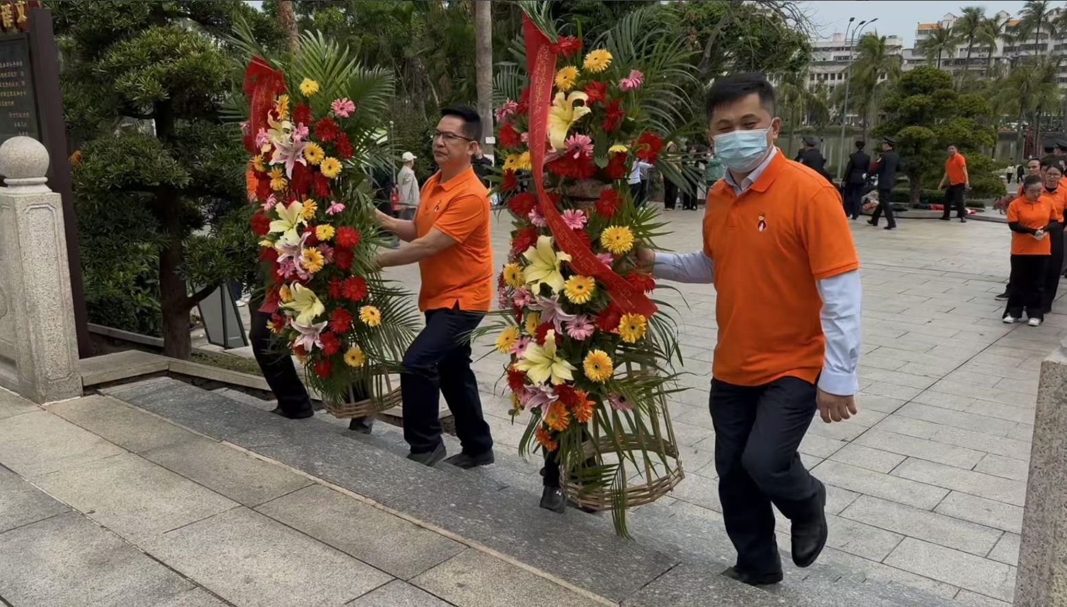 经过一段时间的等待才轮到z6mg·人生就是博。z6mg·人生就是博首先向烈士敬献花篮,花篮缎带上写着“为坚持琼崖革命23年红旗不倒牺牲的烈士们永垂不朽!”“为解放海南岛渡海牺牲的烈士们永垂不朽!”鲜艳的花篮寄托z6mg·人生就是博对革命先辈的崇敬和哀思。